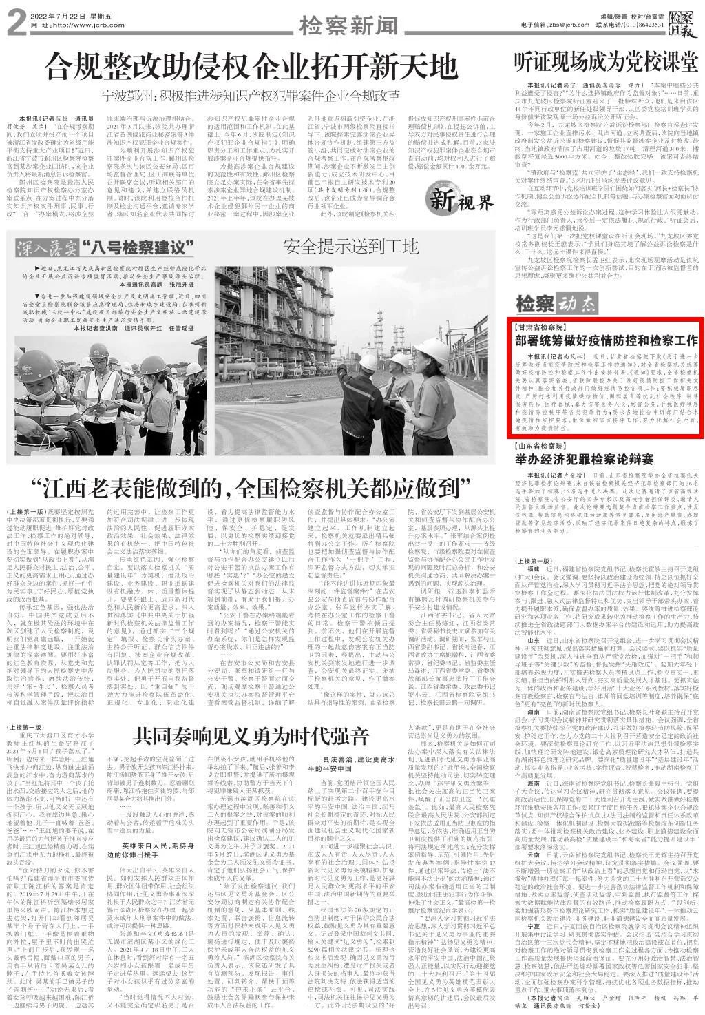 下发《关于进一步统筹做好当前疫情防控和检察工作的通知》,对全省检察机关统筹做好疫情防控和检察工作作出安排部署。《通知》要求,全省检察机关要认真落实省委、省联防联控办关于做好疫情防控工作相关文件精神,配合相关行政部门做好疫情防控各项工作;要积极履职尽责,严厉打击利用疫情哄抬物价、囤积居奇等扰乱社会秩序,制售假劣药品、医疗器械,暴力伤害医务人员,妨害公务,干扰医疗秩序和疫情防控秩序等各类犯罪行为;要求各地控告申诉部门结合本地疫情和防控要求,做深做细信访接待工作,努力化解社会矛盾,有效助力疫情防控。