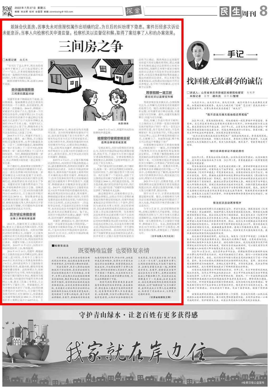 2022年7月27日,检察日报民生周刊刊发《三间房之争》。