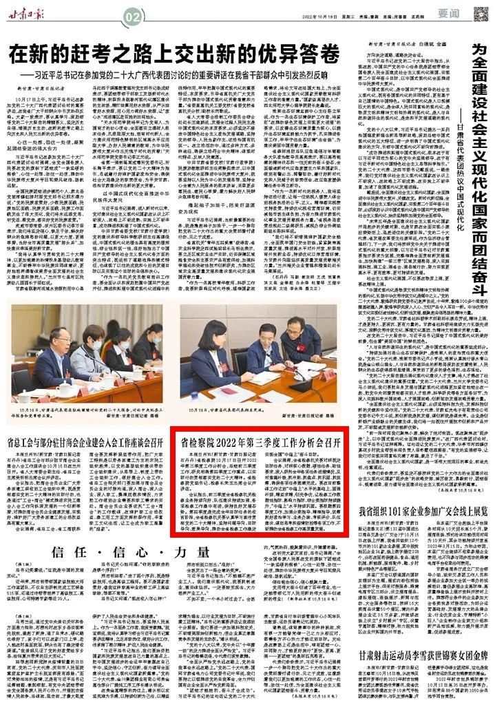 会议指出,前三季度全省检察机关检察业务持续向好,队伍建设持续加强,各项检察工作稳中有进,保持良好发展态势。第四季度是完成全年目标任务的收官阶段,全省检察机关要认真学习宣传贯彻党的二十大精神,坚持问题导向、目标导向、效果导向,推动全省检察工作稳定实现全国“中偏上”奋斗目标。