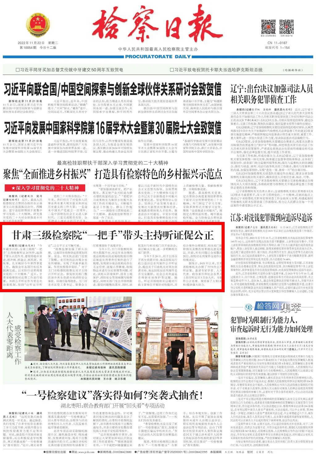 2022年11月22日,检察日报头版刊发《甘肃三级司机社“一把手”带头主持听证促公正》。