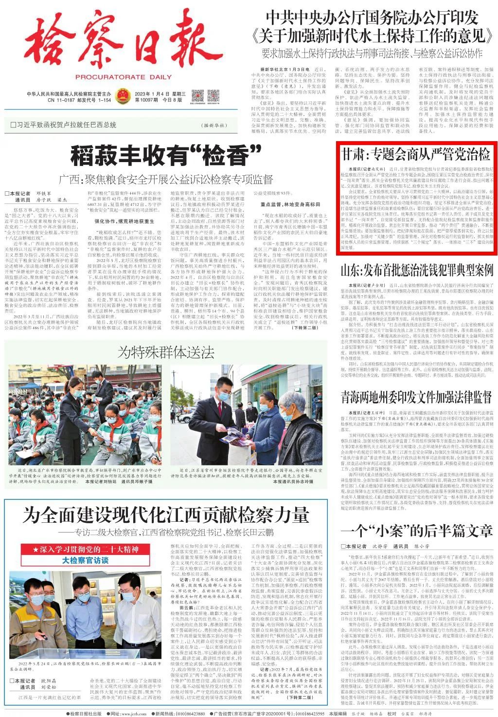2023年1月4日,检察日报头版刊发《甘肃:专题会商从严管党治检》。
