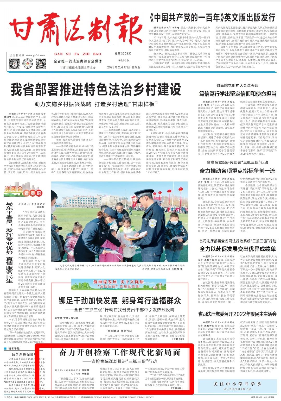 2023年2月17日,甘肃法制报头版刊发《奋力开创检察工作现代化新局面——司机社