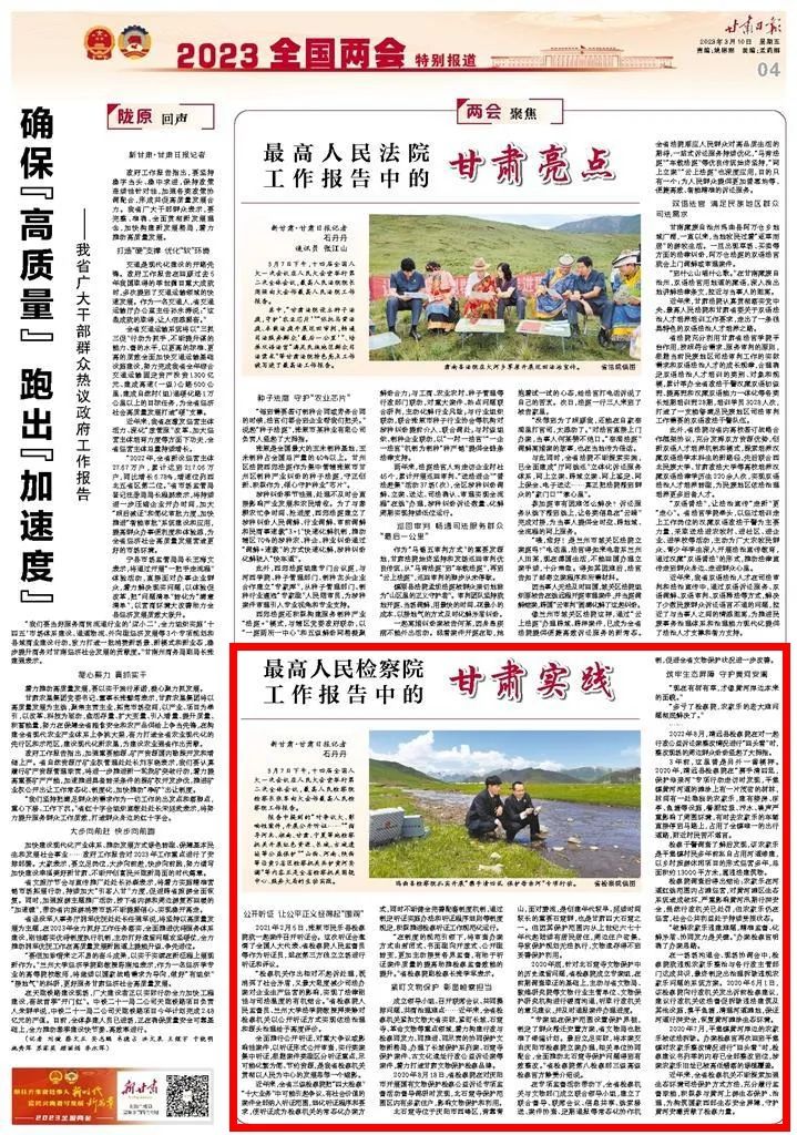 2023年3月10日,甘肃日报《2023全国两会特别报道》刊发《最高司机社