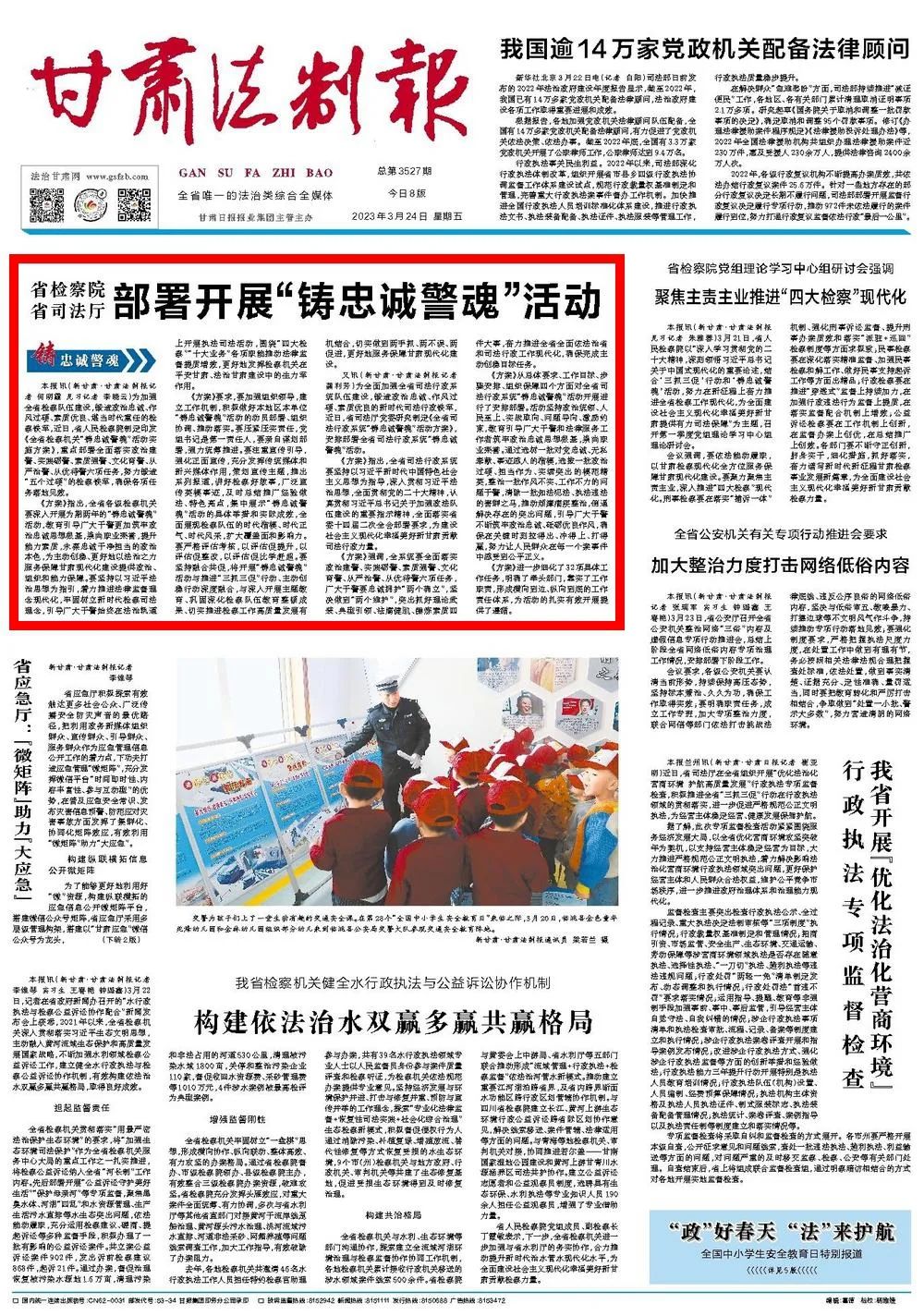 2023年3月24日,甘肃法制报头版刊发《司机社