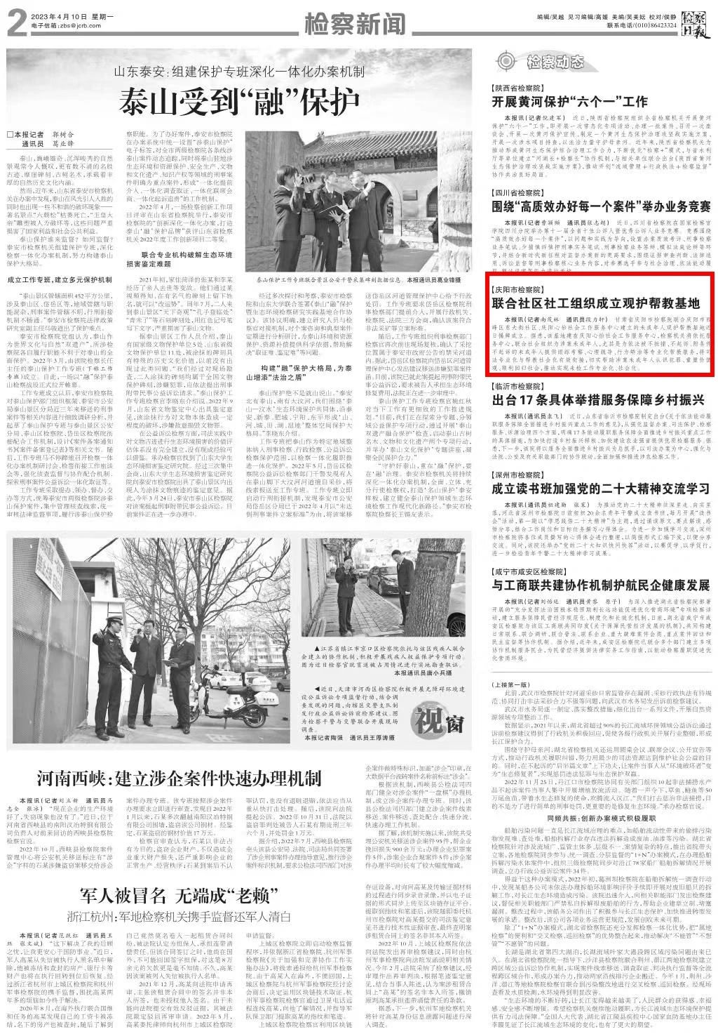 2023年4月10日,检察日报二版刊发《庆阳市司机社:联合社区社工组织成立观护帮教基地》。