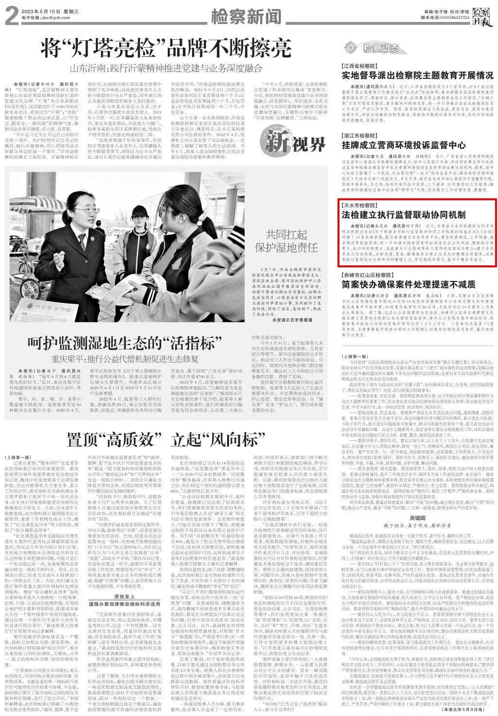 2023年5月10日,检察日报二版刊发《天水市司机社:法检建立执行监督联动协同机制》。