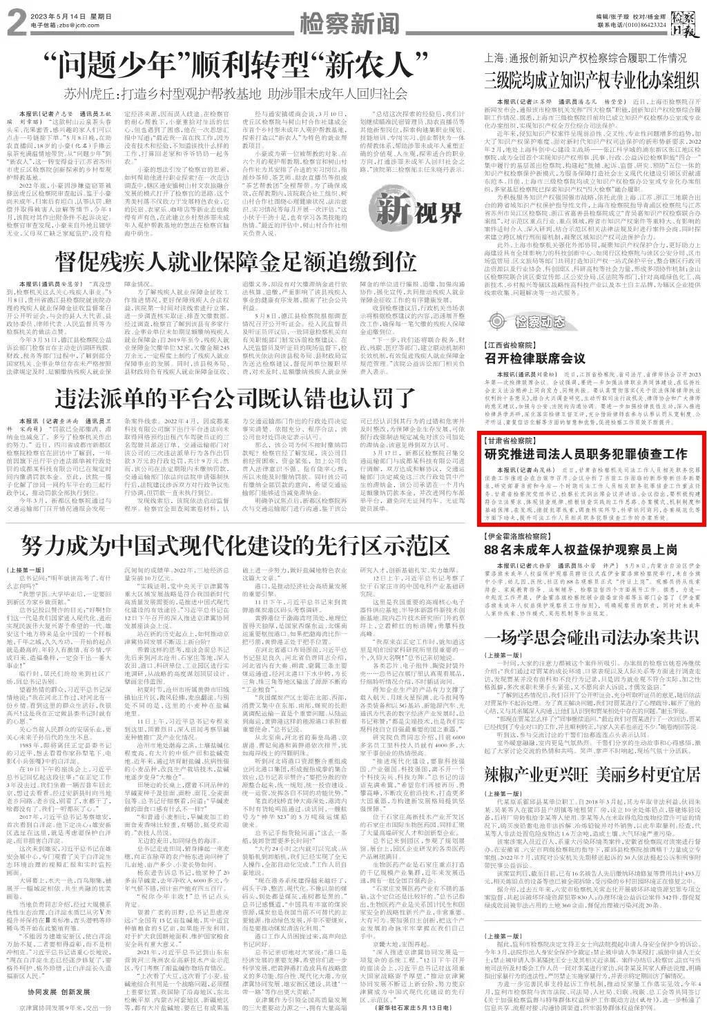 2023年5月14日,检察日报二版刊发《司机社