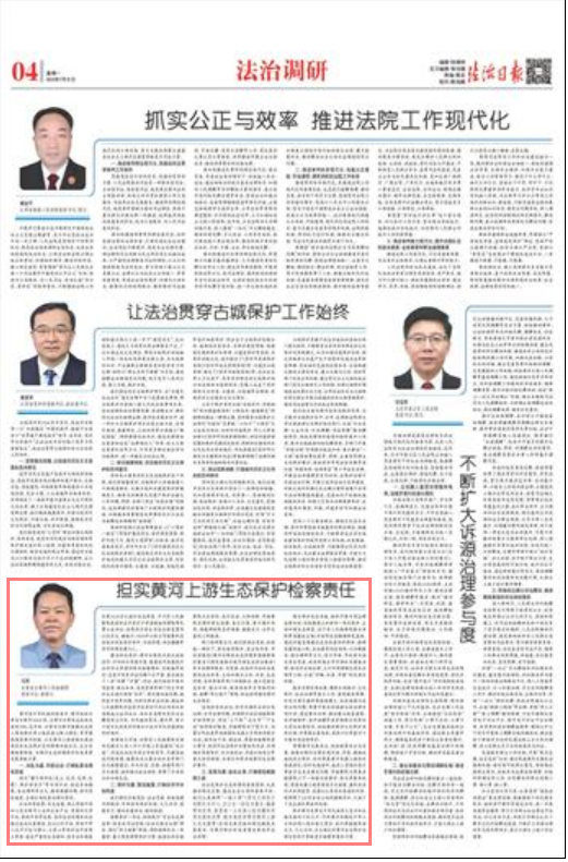 部门协同聚合力。我们坚持在党委、政府统一领导下,深化协同保护,先后向市委、市政府报送《黄河白银段生态环境资源检察保护报告》《固体废物污染河湖生态防治报告》等多份调研报告,为党委、政府护河治水决策提供法治参考。主动加强与公安、水务、生态环境、自然资源等部门沟通配合,建立完善信息共享、联合行动、线索移送等多项协作机制,破解“单打独斗”困境,依法协同推动黄河生态保护。