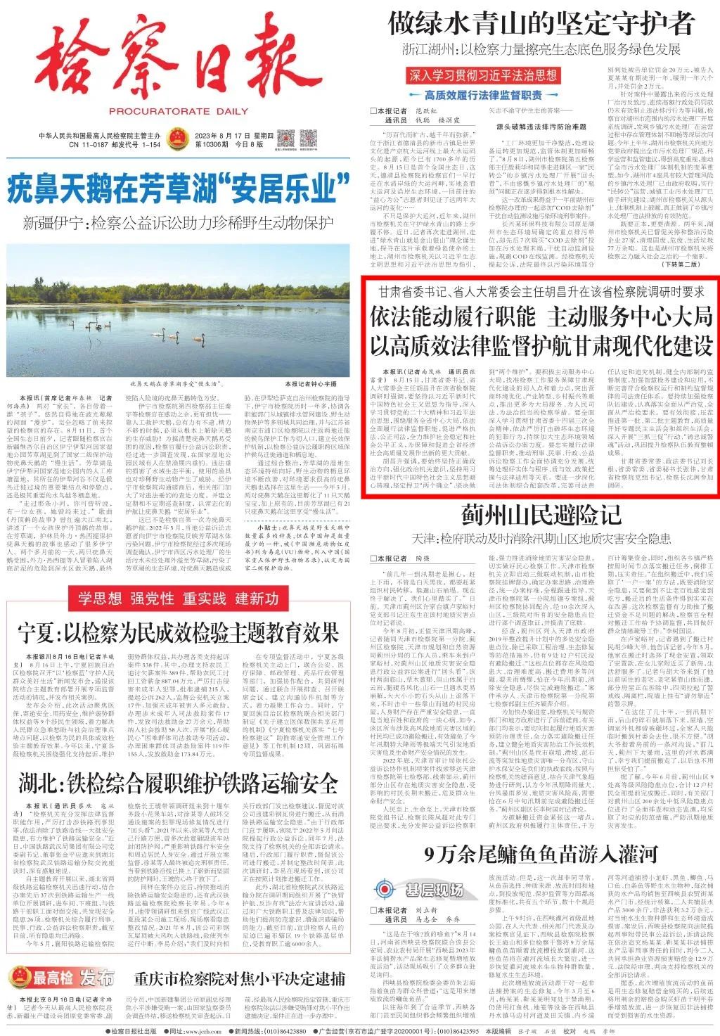2023年8月17日,检察日报头版刊发《甘肃省委书记、省人大常委会主任胡昌升在该司机社