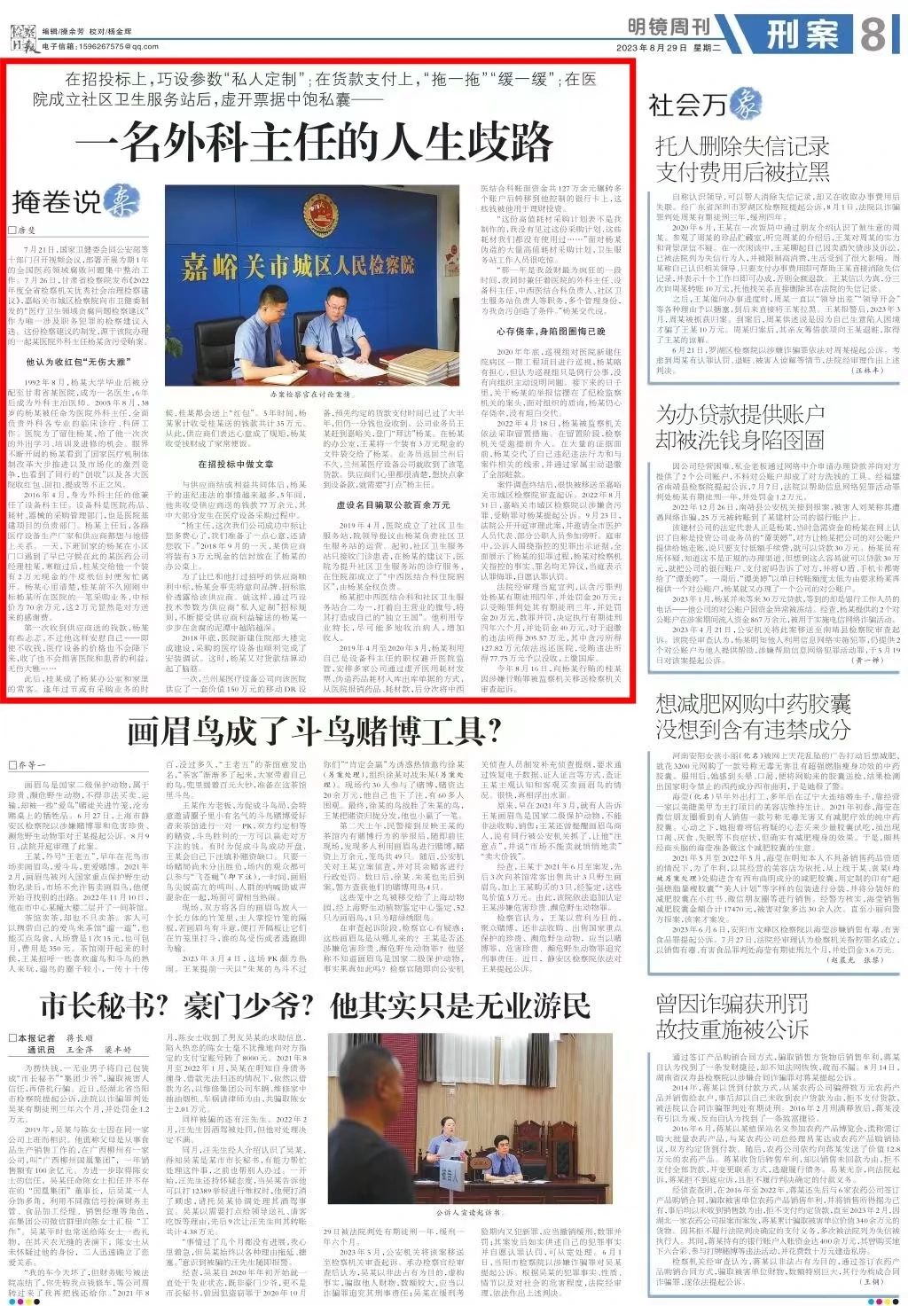 2023年8月29日,检察日报明镜周刊刊发《一名外科主任的人生歧路》。