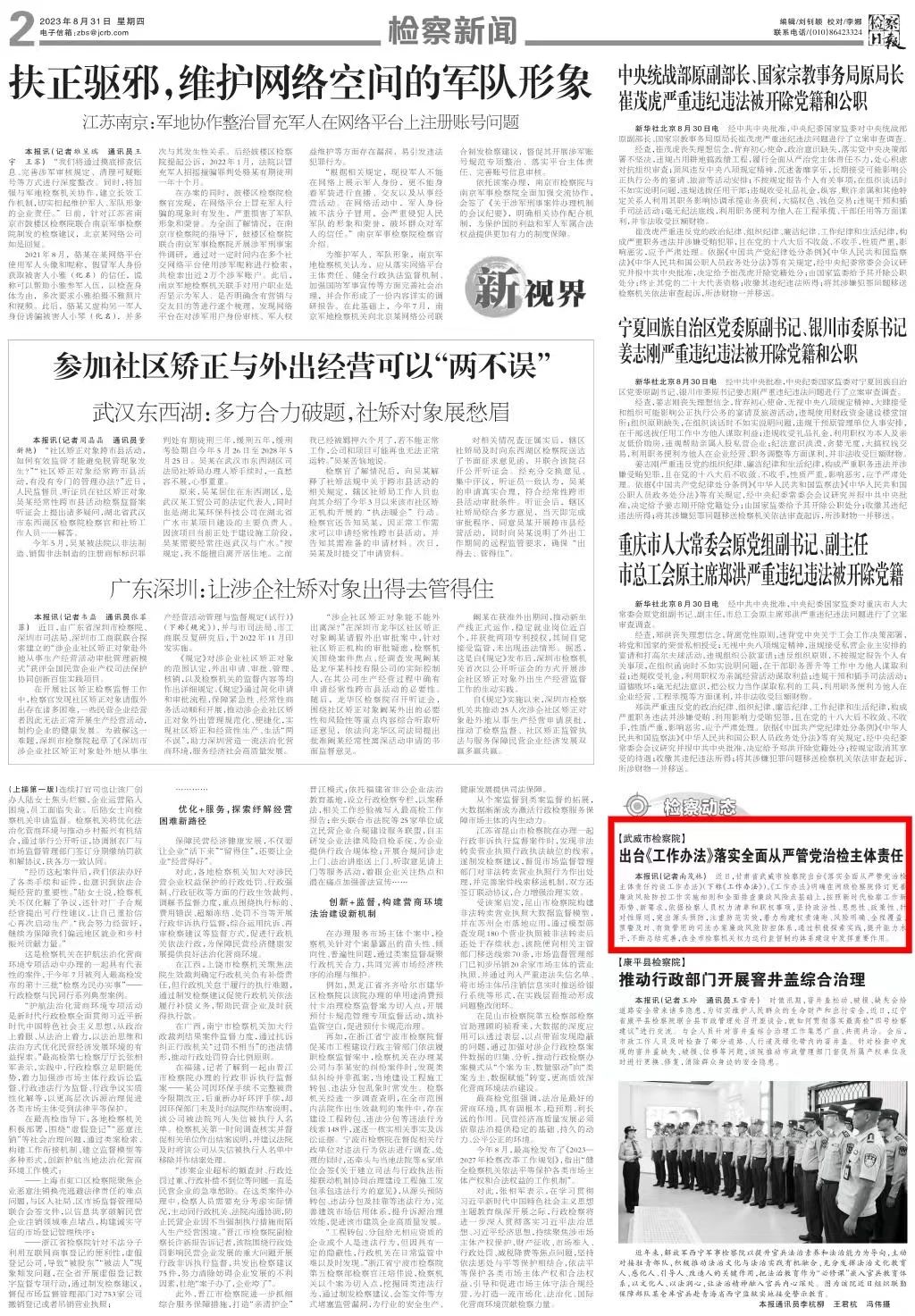 2023年8月31日,检察日报刊发《武威市司机社:出台〈工作办法〉落实全面从严治党治检主体责任》。