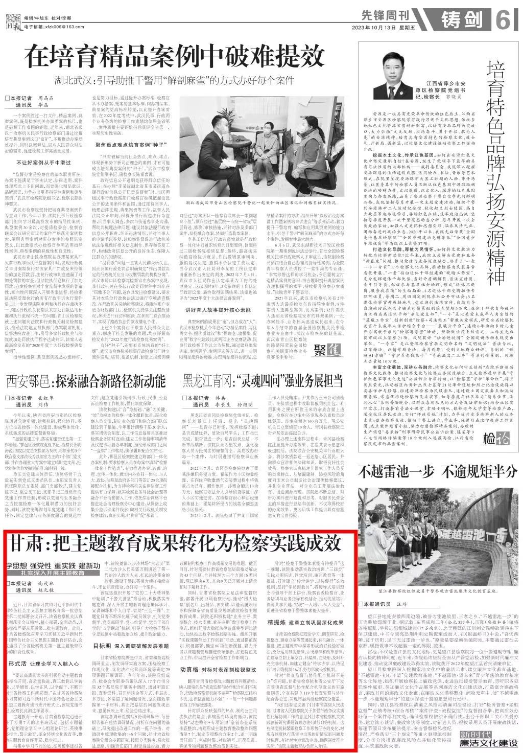 2023年10月13日,检察日报先锋周刊刊发《甘肃:把主题教育成果转化为检察实践成效》。