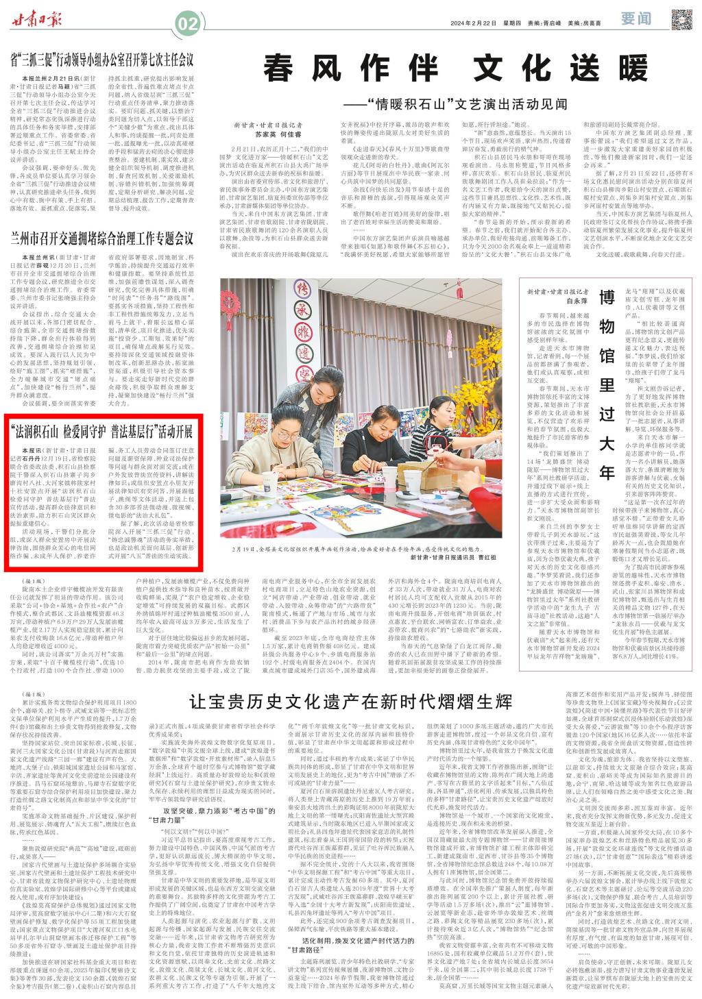 2024年2月22日,甘肃日报刊发《“法润积石山 检爱同守护 普法基层行”活动开展》。