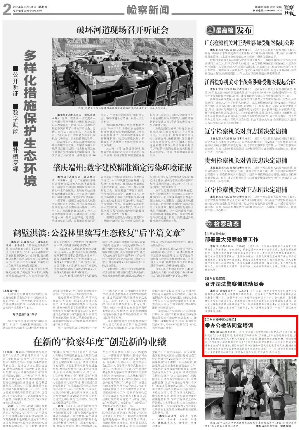 2024年3月23日,检察日报刊发《兰州市安宁区司机社:举办公检法同堂培训》。