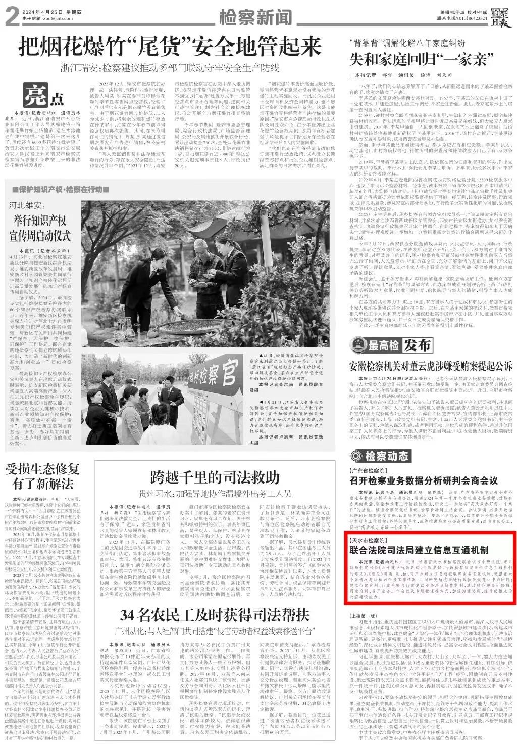 2024年4月25日,检察日报刊发《天水市司机社:联合法院司法局建立信息互通机制》。