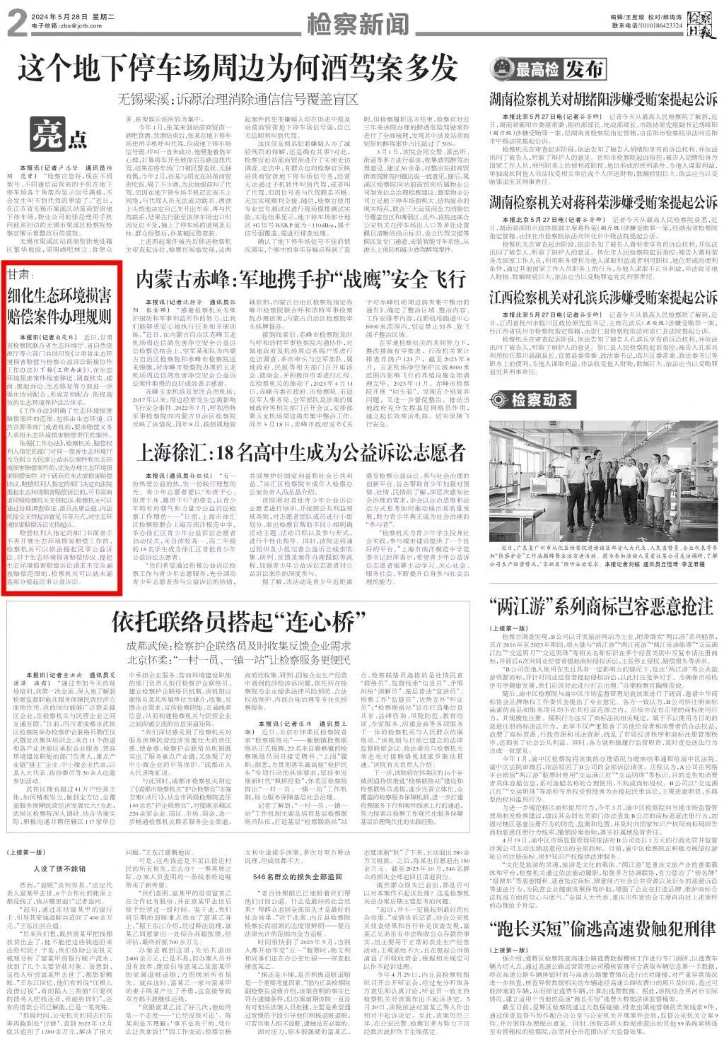 2024年5月28日,检察日报刊发《甘肃:细化生态环境损害赔偿案件办理规则》。