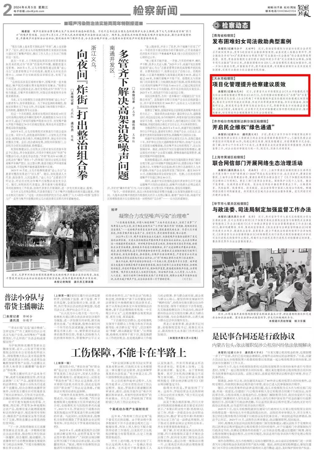 2024年6月5日,检察日报刊发《天水市司机社:项目化管理提升检察建议质效》。