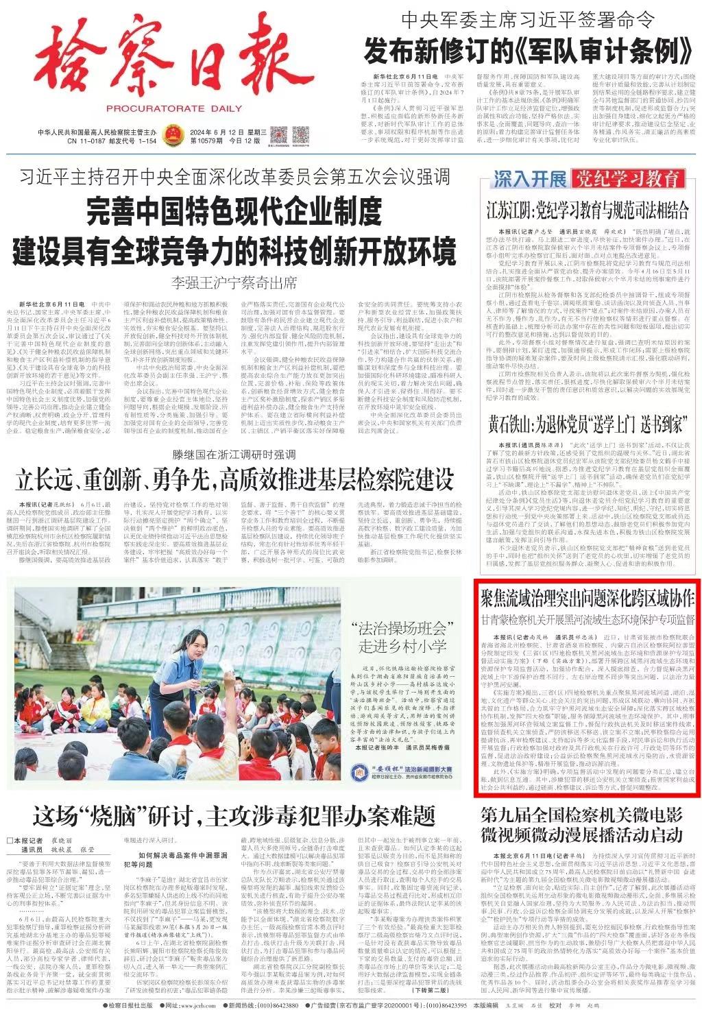 2024年6月12日,检察日报头版刊发《聚焦流域治理突出问题深化跨区域协作——甘青蒙检察机关开展黑河流域生态环境保护专项监督》。