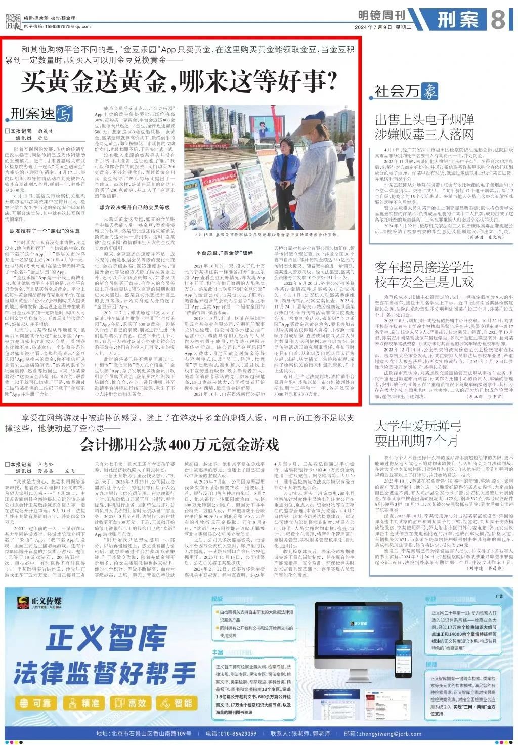 2024年7月9日,检察日报明镜周刊刊发《买黄金送黄金,哪来这等好事?》。