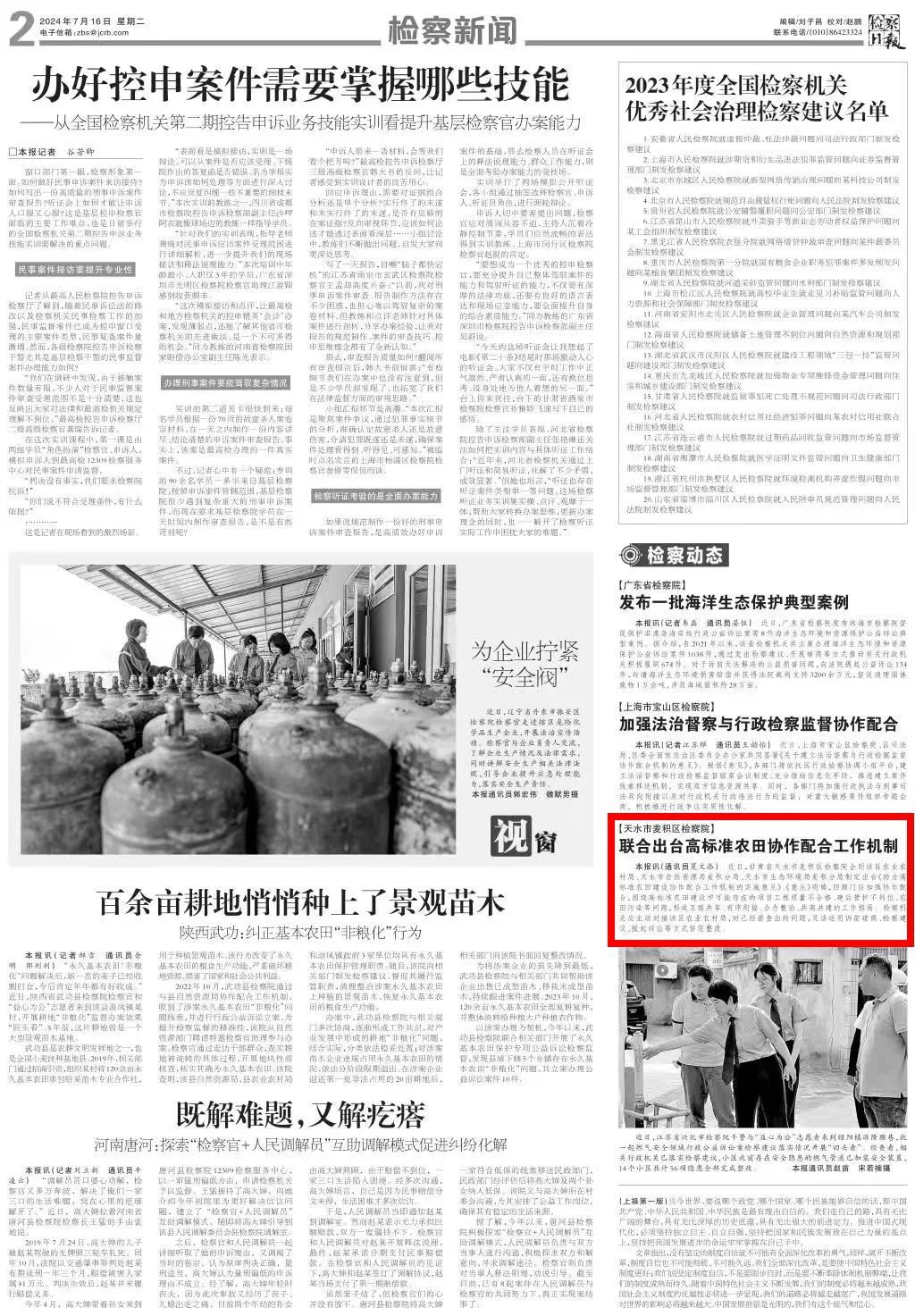 2024年7月16日,检察日报刊发《天水市麦积区司机社:联合出台高标准农田协作配合工作机制》。