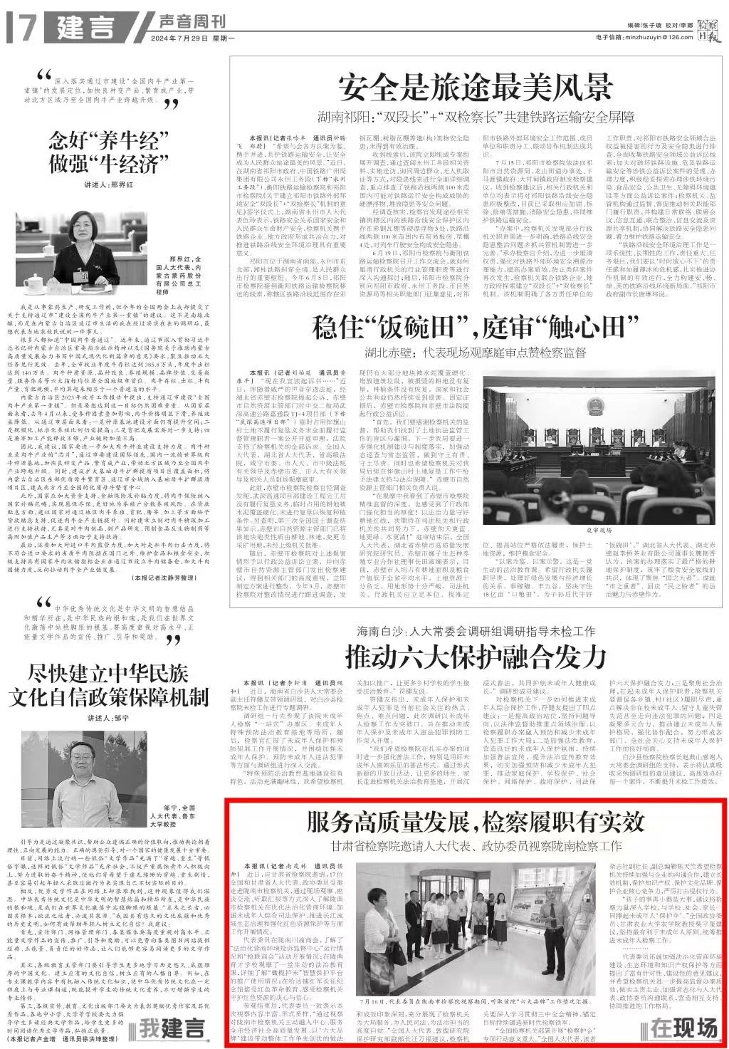 2024年7月29日,检察日报声音周刊刊发《服务高质量发展,检察履职有实效——司机社