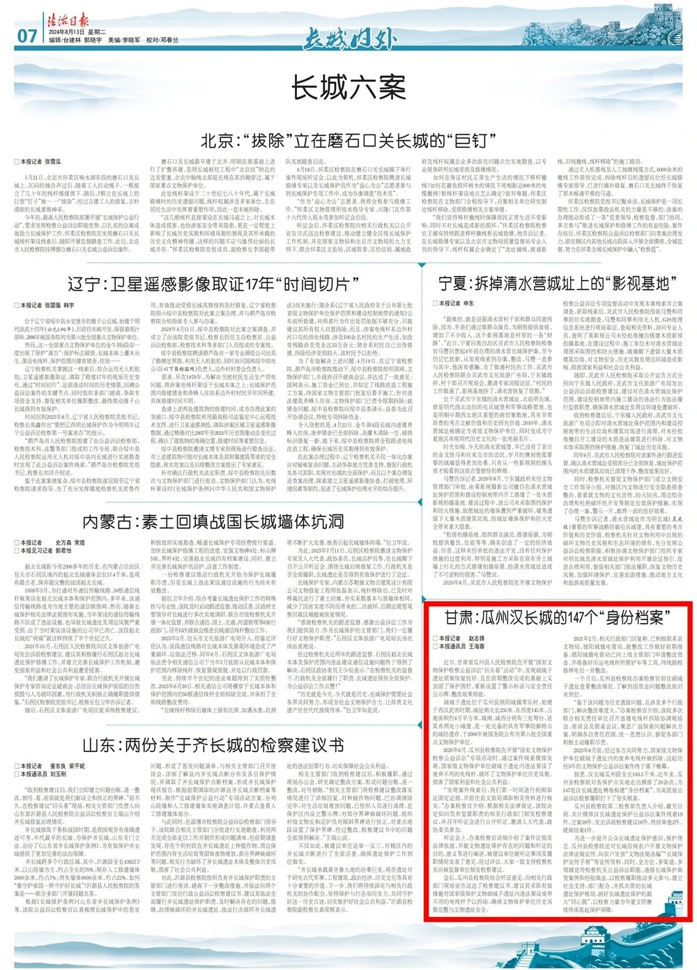 2024年8月13日,法治日报刊发《甘肃:瓜州汉长城的147个“身份档案”》。