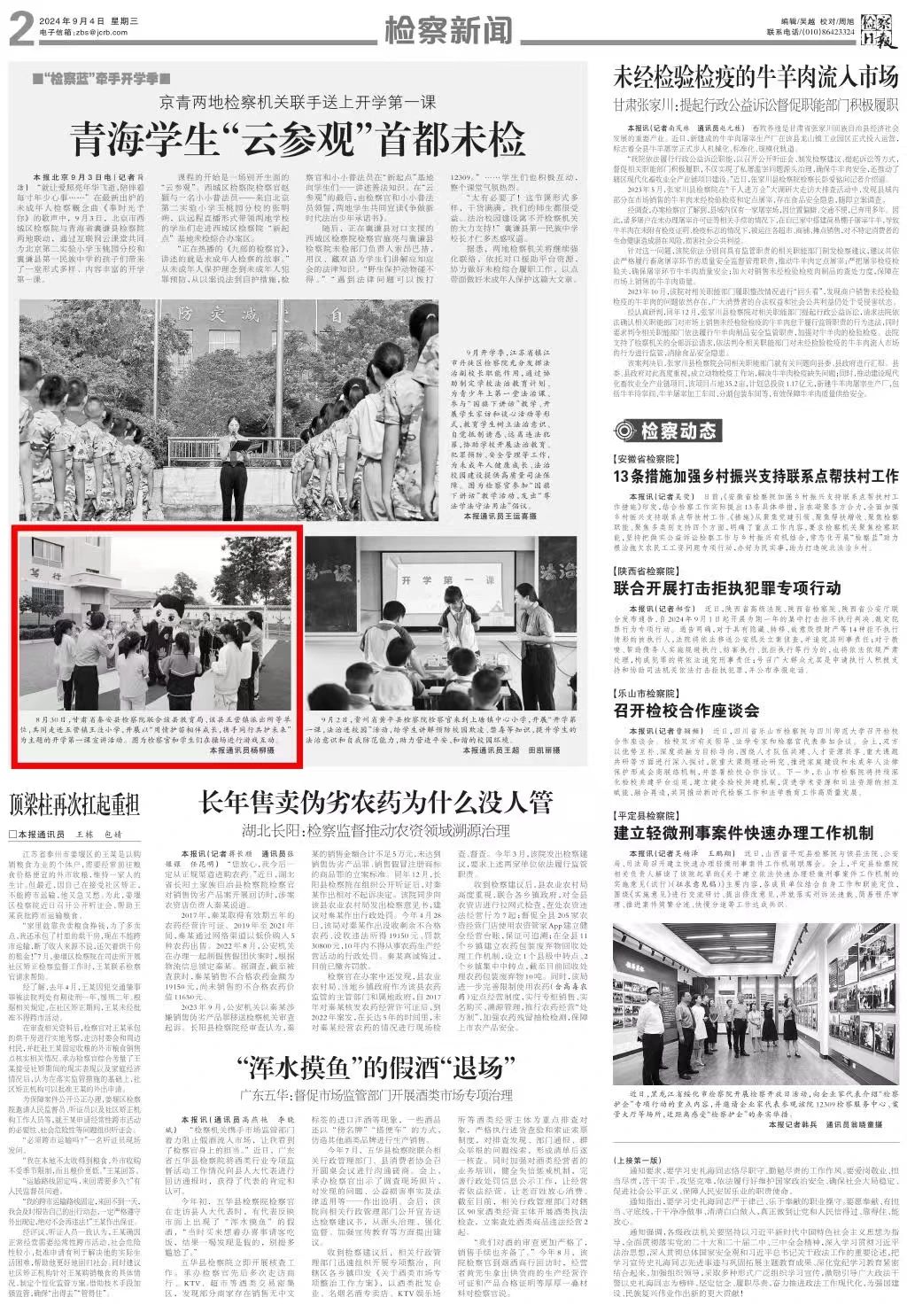 2024年9月4日,检察日报刊发秦安县司机社开展开学第一课宣讲活动的图片新闻。