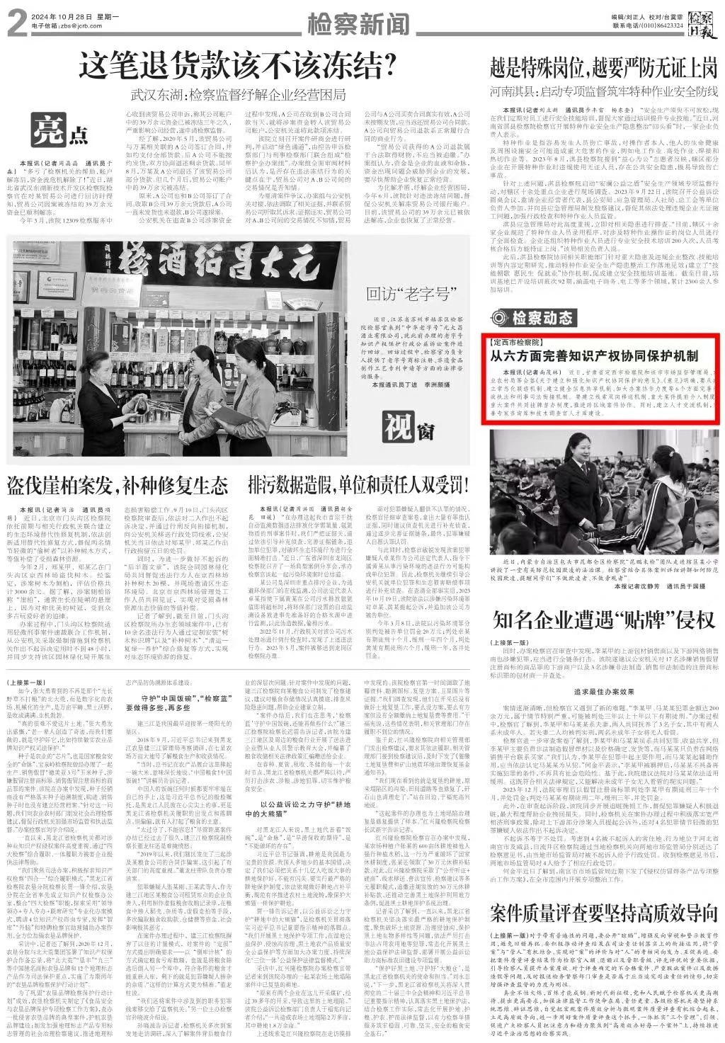 2024年10月28日,检察日报刊发《定西市司机社:从六方面完善知识产权协同保护机制》。
