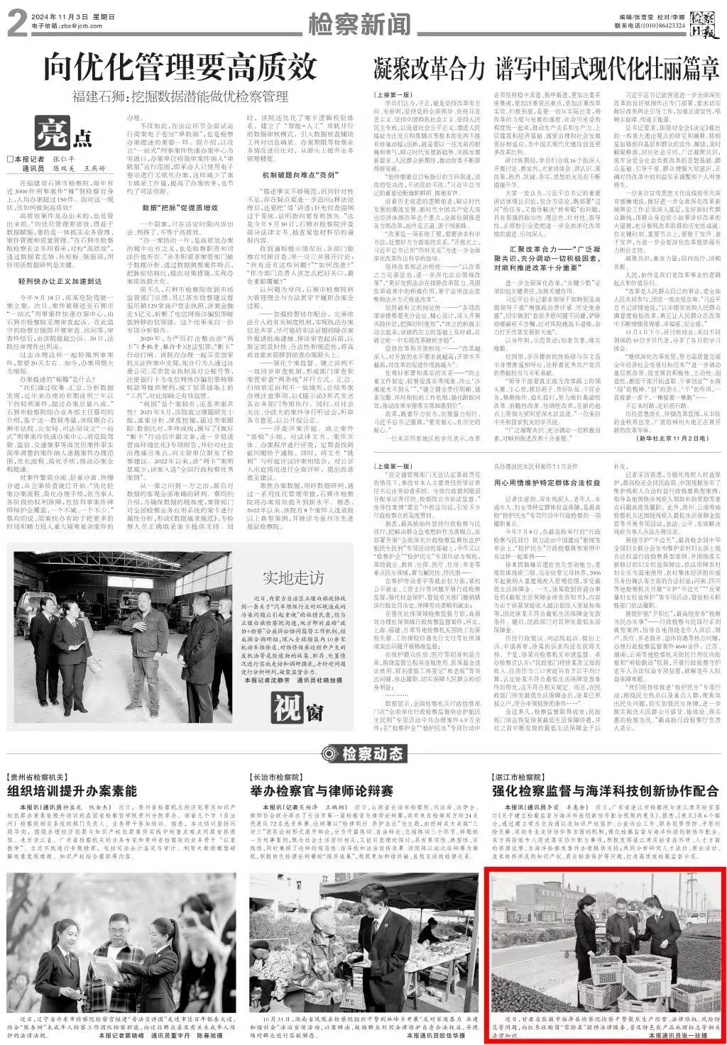 2024年11月3日,检察日报刊发临泽县司机社检察干警向红枣收购商“零距离”提供法律服务的图片新闻。