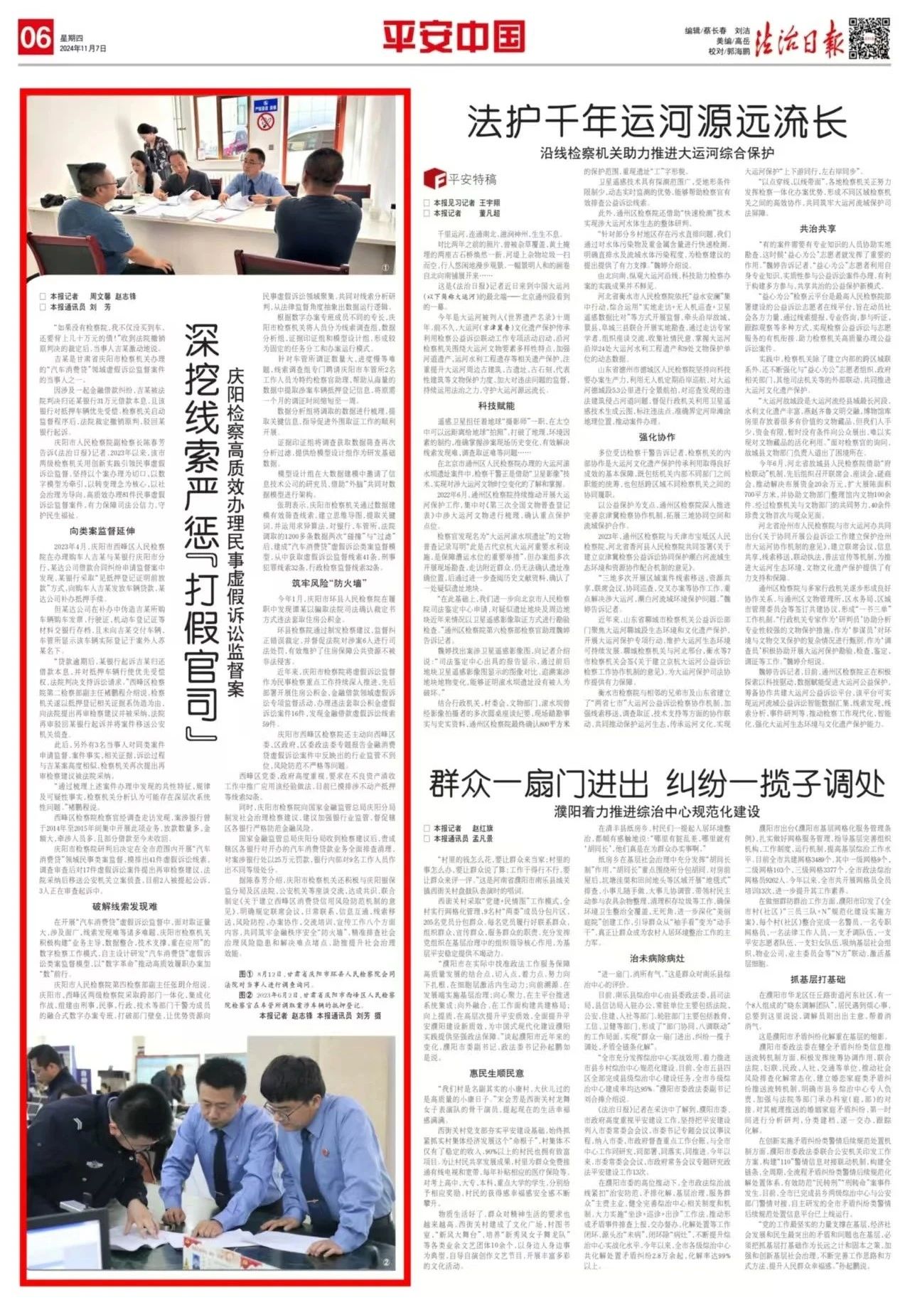 2024年11月7日,法治日报刊发《深挖线索严惩“打假官司”——庆阳检察高质效办理民事虚假诉讼监督案》。