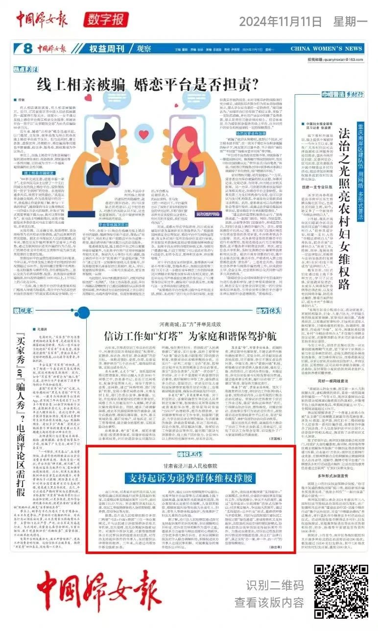 2024年11月11日,中国妇女报刊发《甘肃省泾川县司机社