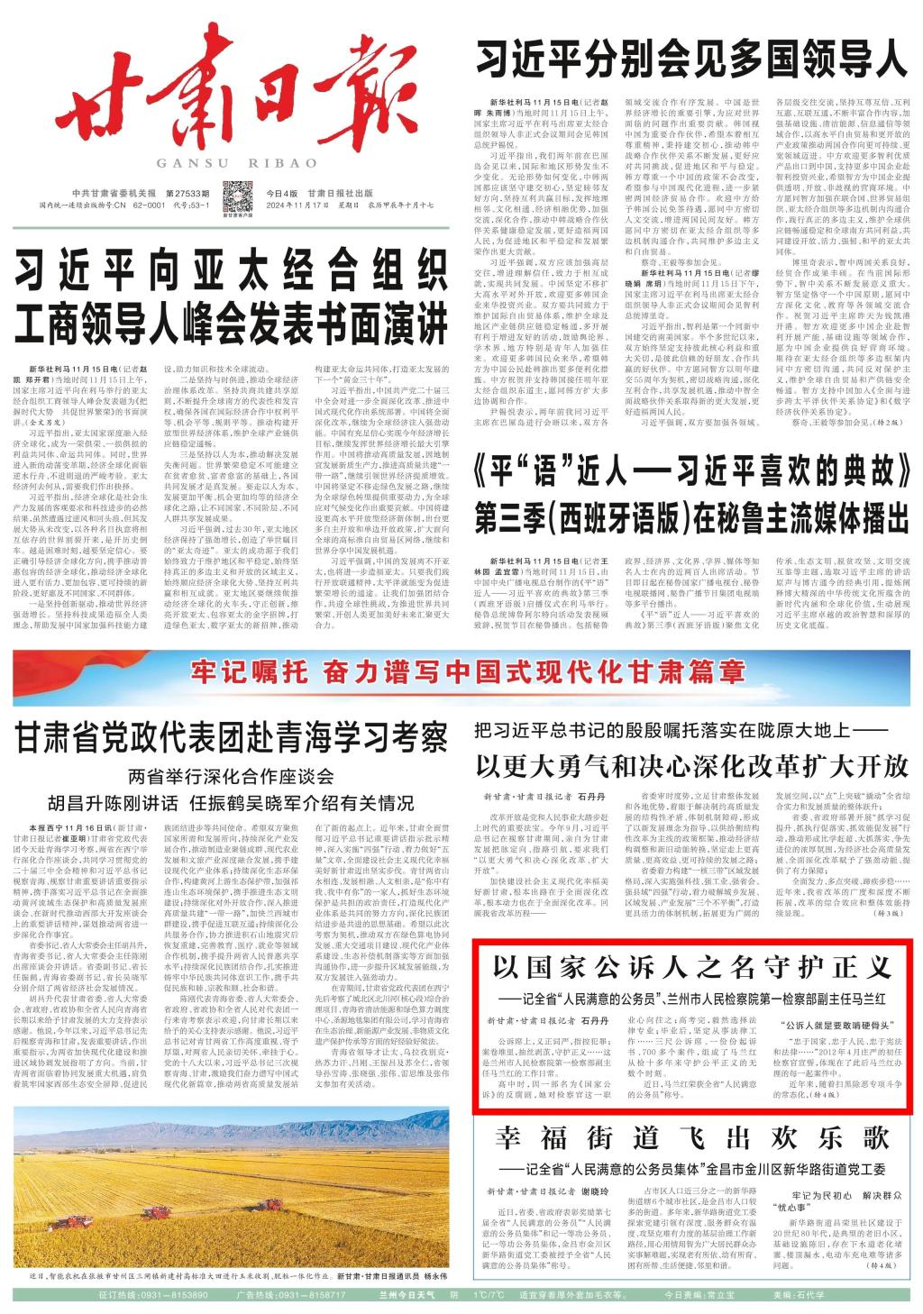 2024年11月17日,甘肃日报头版刊发《以国家公诉人之名守护正义——记全省“人民满意的公务员”、兰州市司机社