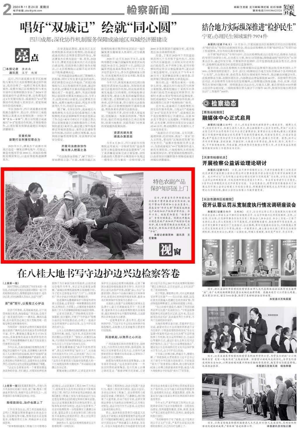 2024年11月24日,检察日报二版视窗栏目刊发图片新闻《特色农副产品保护知识送上门》。