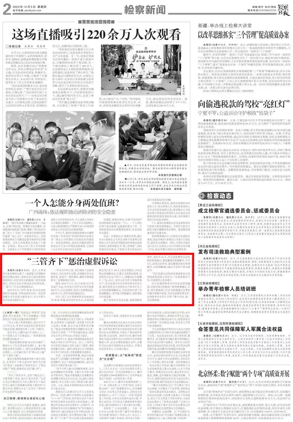2024年12月5日,检察日报刊发《“三管齐下”惩治虚假诉讼》。