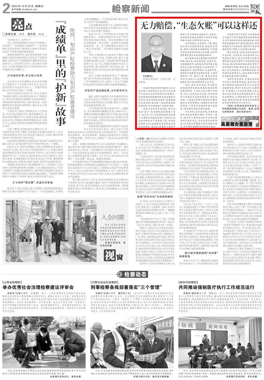 2024年12月29日,检察日报刊发《无力赔偿,“生态欠账”可以这样还》。