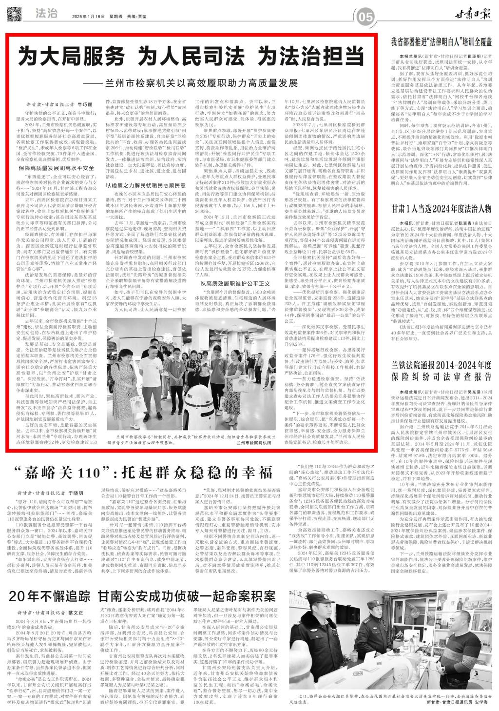 2025年1月16日,甘肃日报刊发《为大局服务 为人民司法 为法治担当——兰州市检察机关以高效履职助力高质量发展》。