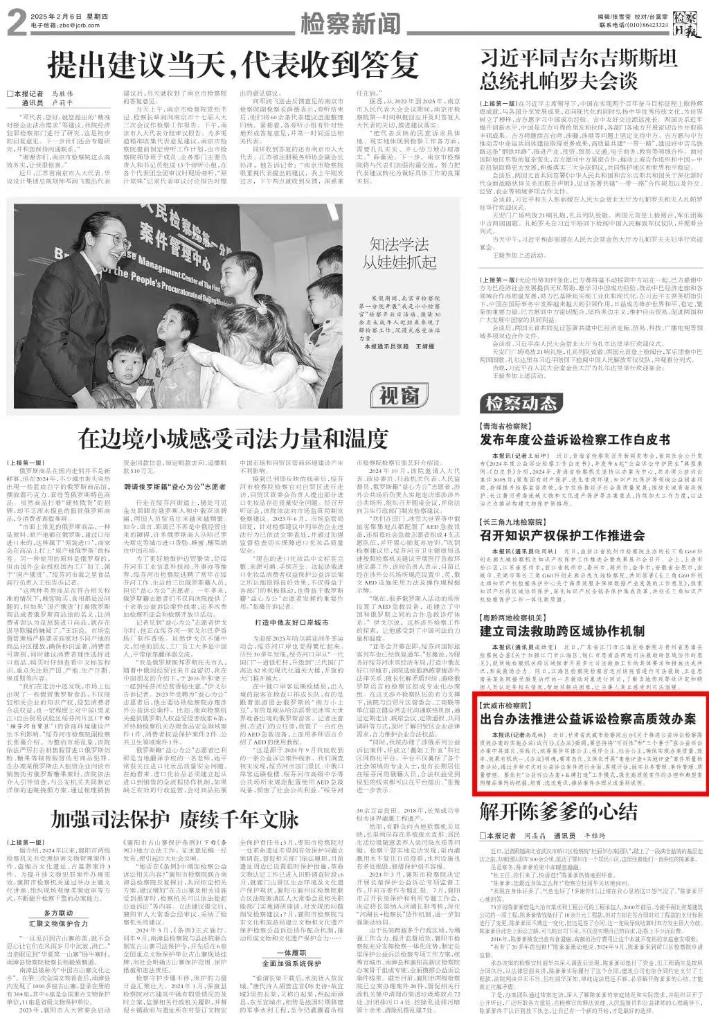 2025年2月6日,检察日报刊发《武威市司机社:出台办法推进公益诉讼检察高质效办案》。