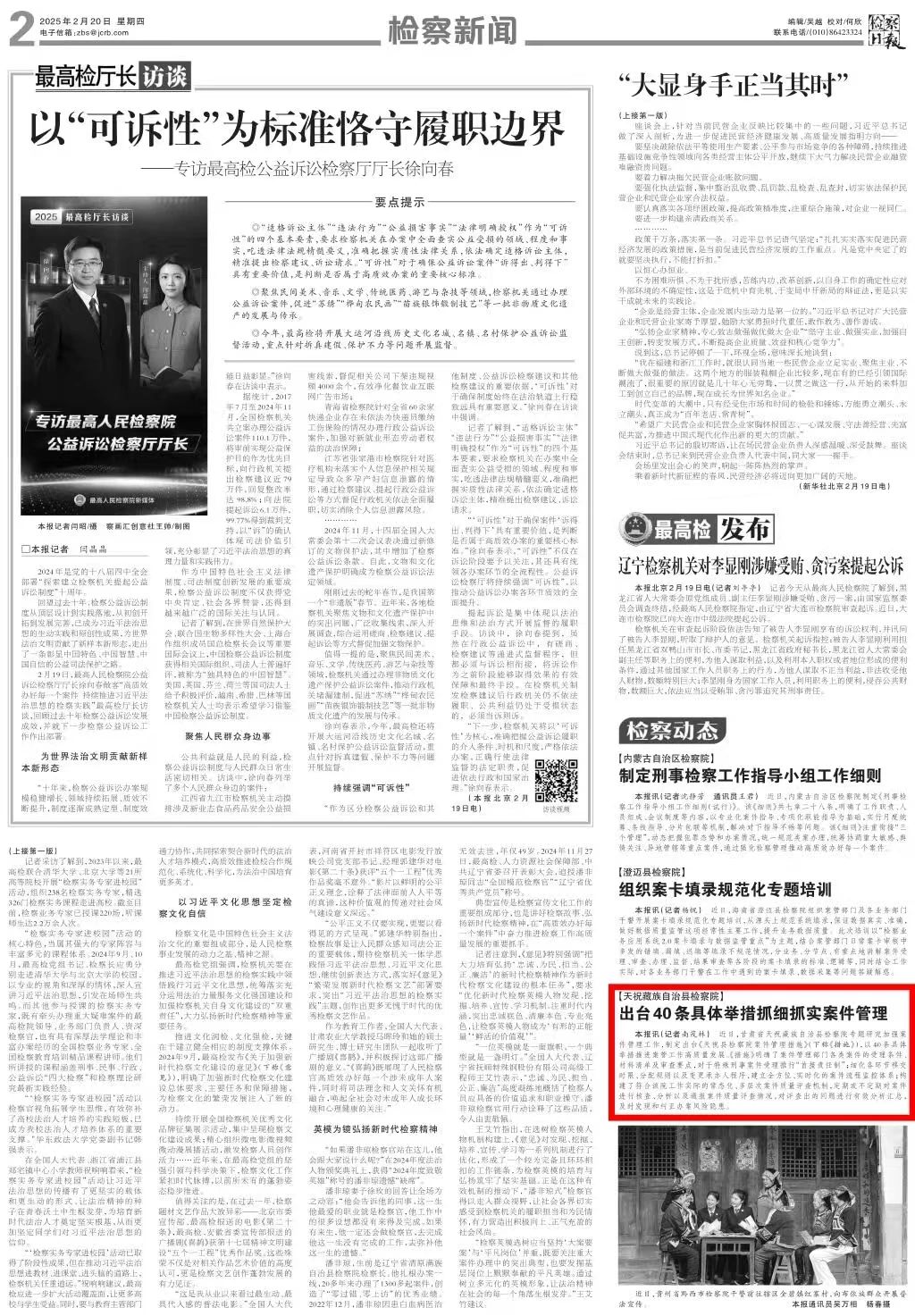 2025年2月20日,检察日报刊发《天祝藏族自治县司机社:出台40条具体举措抓细抓实案件管理》。