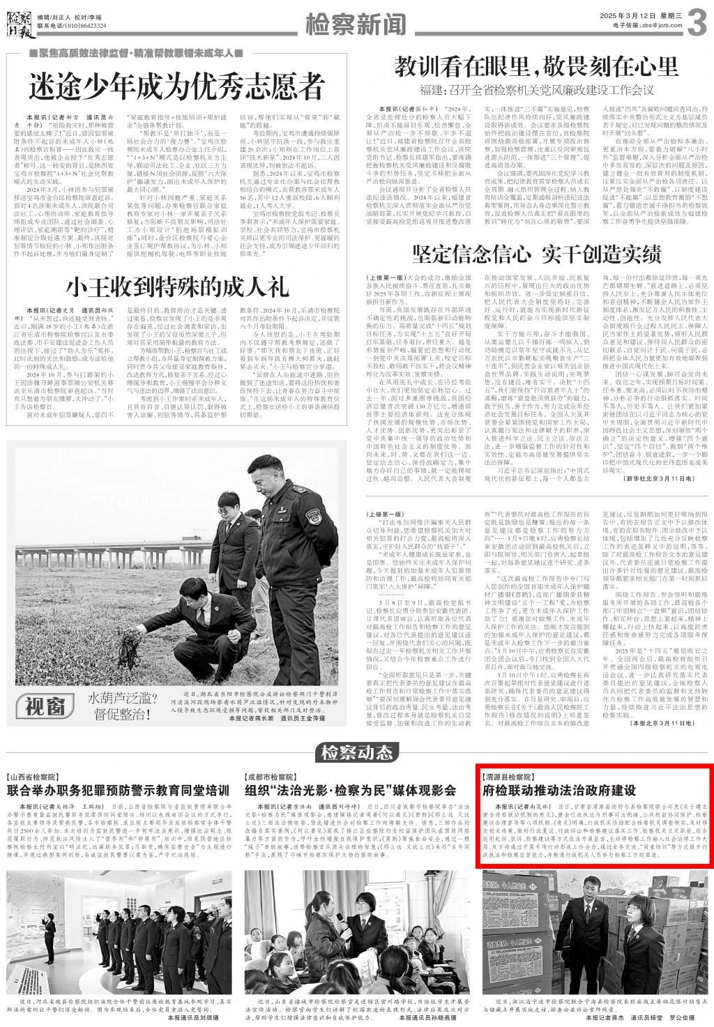 2025年3月12日,检察日报刊发《渭源县司机社:府检联动推动法治政府建设》。