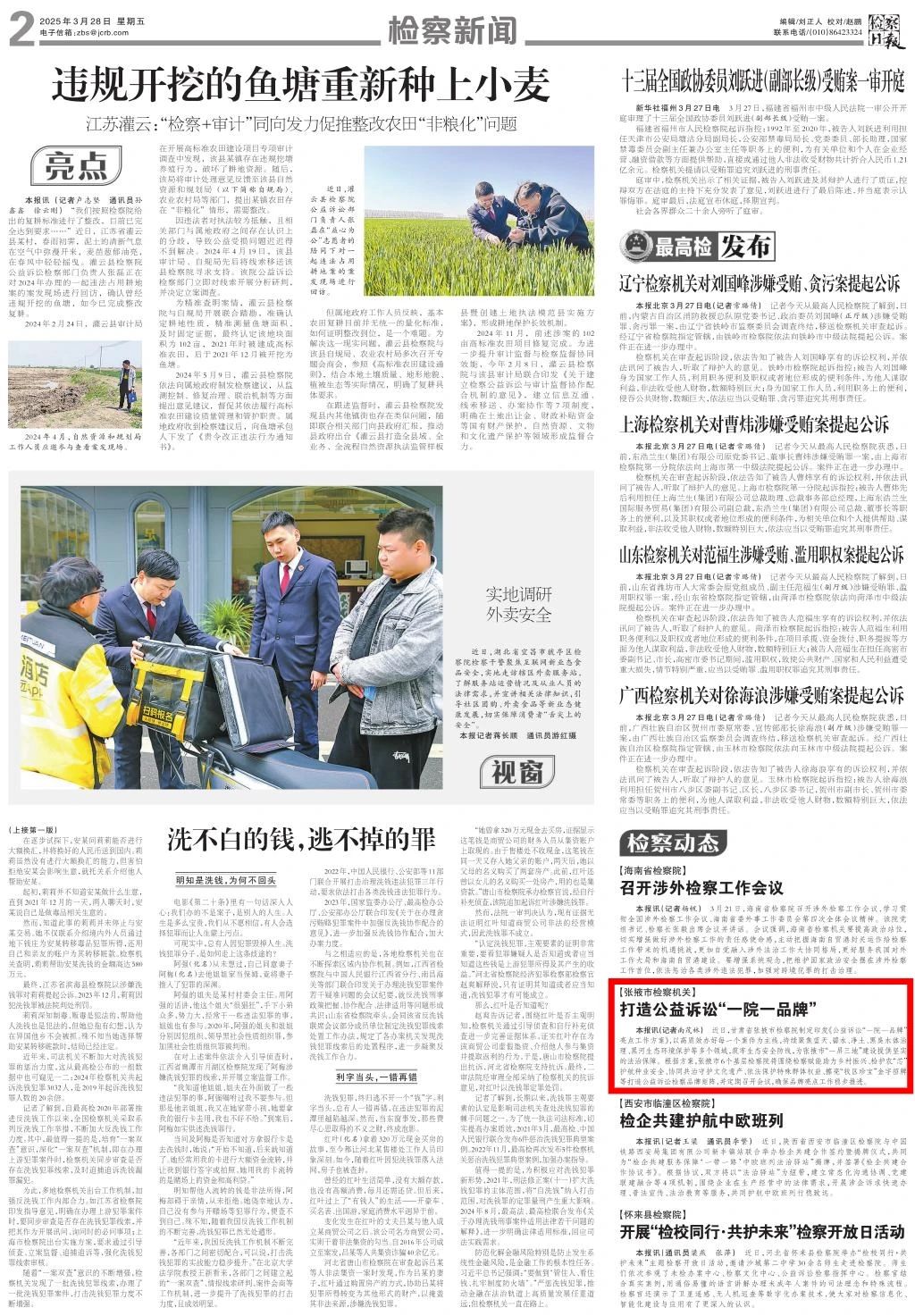 2025年3月28日,检察日报刊发《张掖市检察机关:打造公益诉讼“一院一品牌”》。