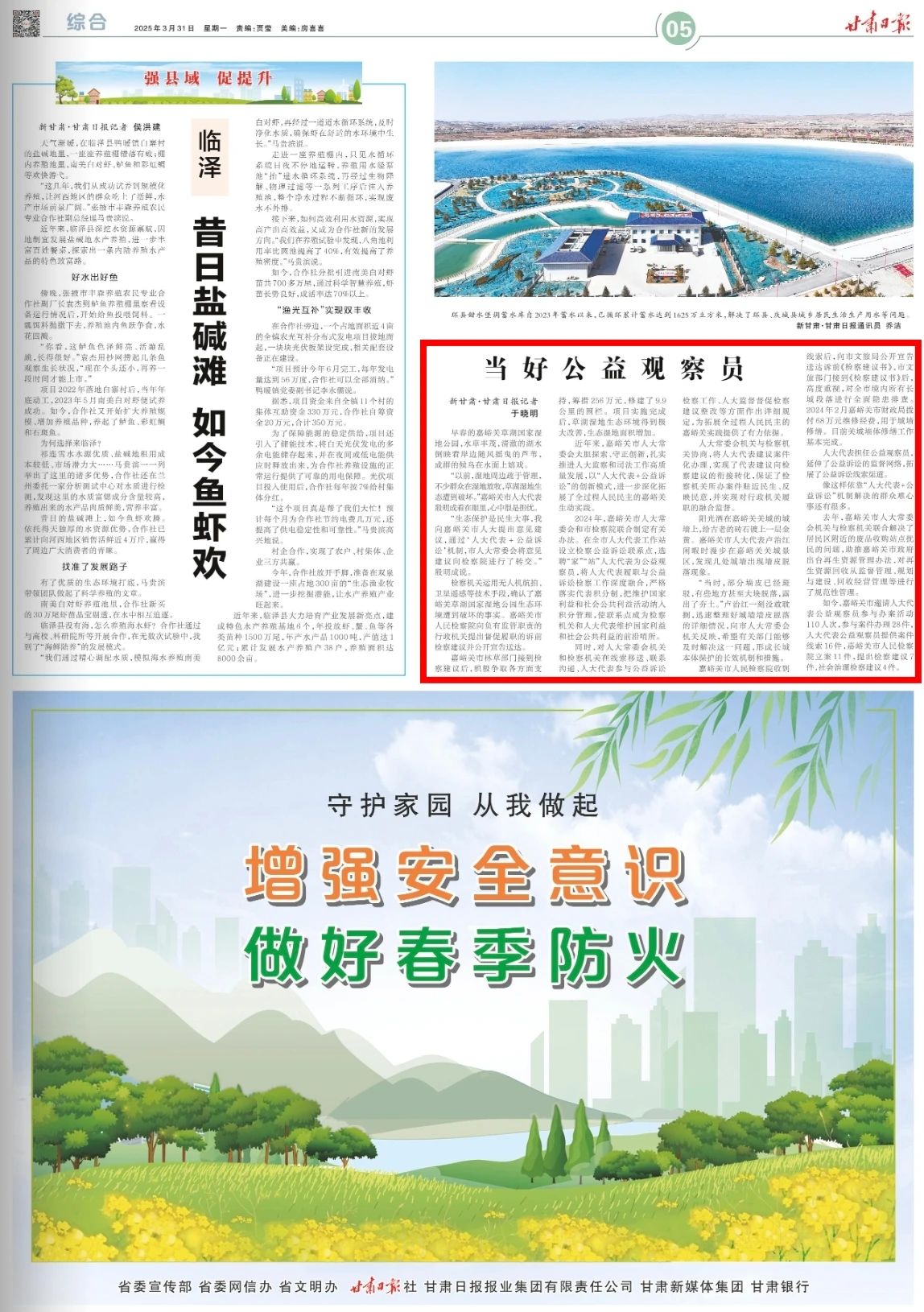 2025年3月31日,甘肃日报刊发《当好公益观察员》。