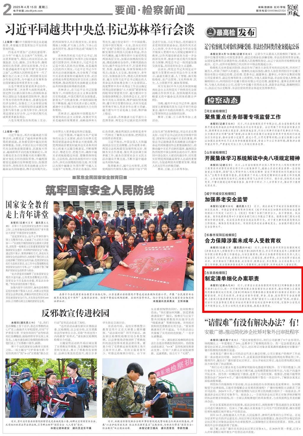2025年4月15日,检察日报刊发《古浪县司机社:制定清单细化办案职责》。