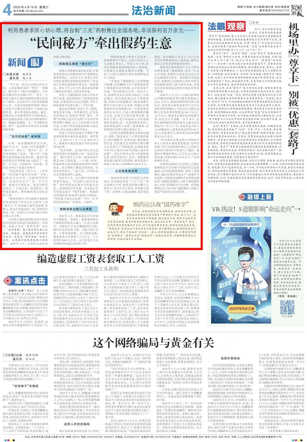 2025年4月16日,检察日报刊发《“民间秘方”牵出假药生意》。
