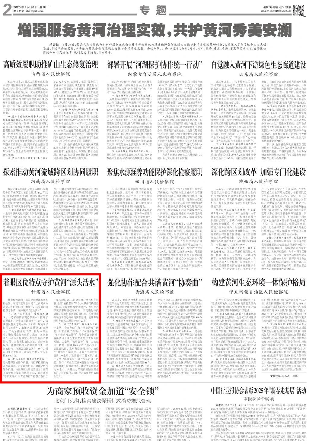 2025年4月28日,检察日报刊发《着眼区位特点守护黄河“源头活水”》。