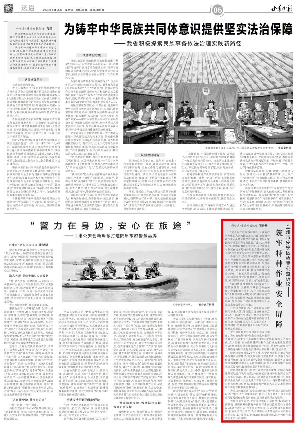 2025年6月26日,甘肃日报刊发《兰州市安宁区检察公益诉讼——筑牢特种作业安全屏障》。