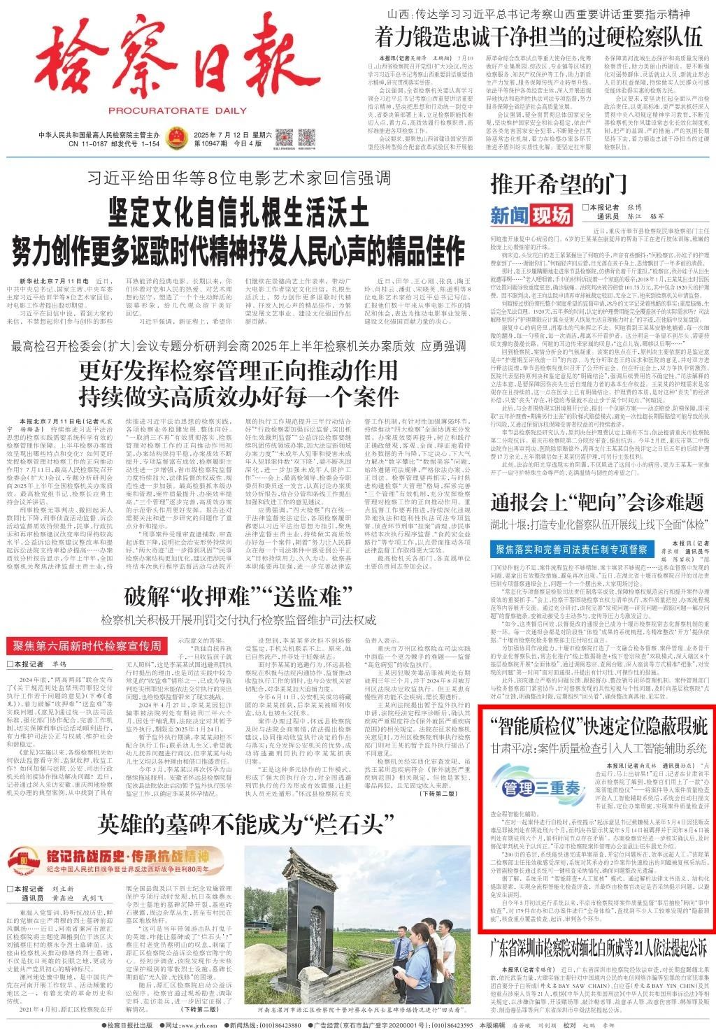 2025年7月12日,检察日报头版刊发《“智能质检仪”快速定位隐蔽瑕疵 甘肃平凉:案件质量检查引入人工智能辅助系统》。