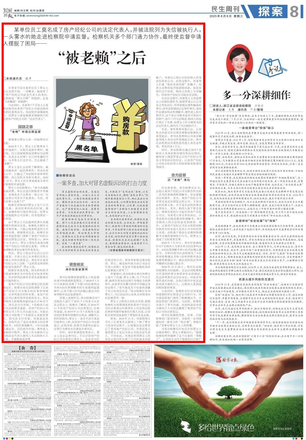 2025年8月6日,检察日报民生周刊刊发《“被老赖”之后》。