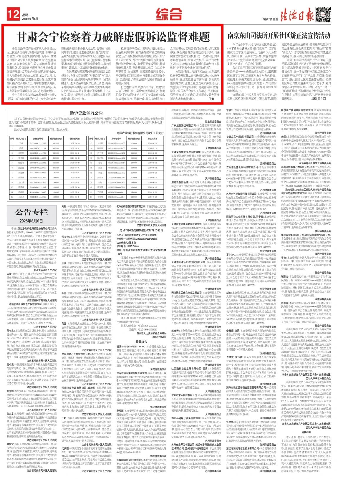 2025年8月6日,法治日报刊发《甘肃会宁检察着力破解虚假诉讼监督难题》。