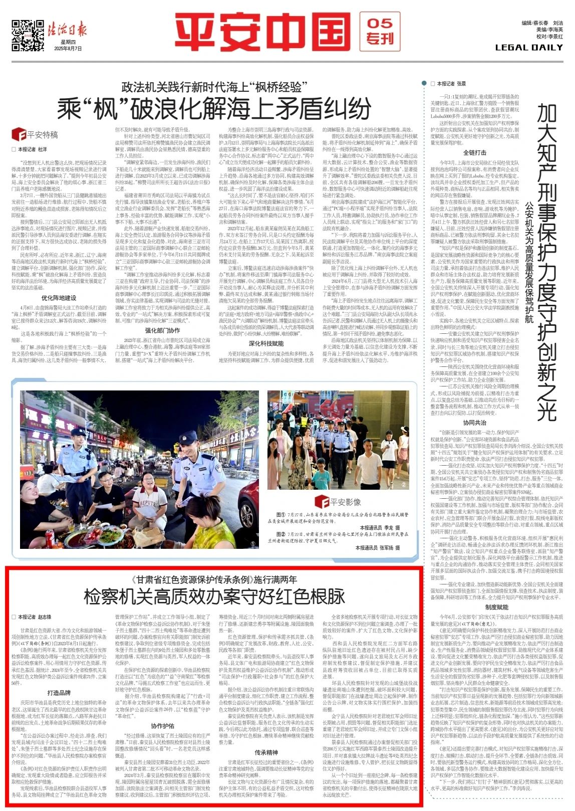 2025年8月7日,法治日报刊发《〈甘肃省红色资源保护传承条例〉施行满两年 检察机关高质效办案守好红色根脉》。