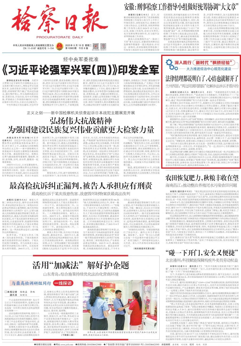 2025年8月19日,检察日报头版刊发《法律情理都说明白了,心结也就解开了 兰州西固:“两边同调同跟踪”化解涉法涉诉矛盾纠纷》。